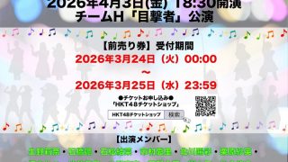 HKT48 【動画】2026.03.22(17:00~) HKT48 チームH「目撃者」劇場公演 生野莉奈 生誕祭