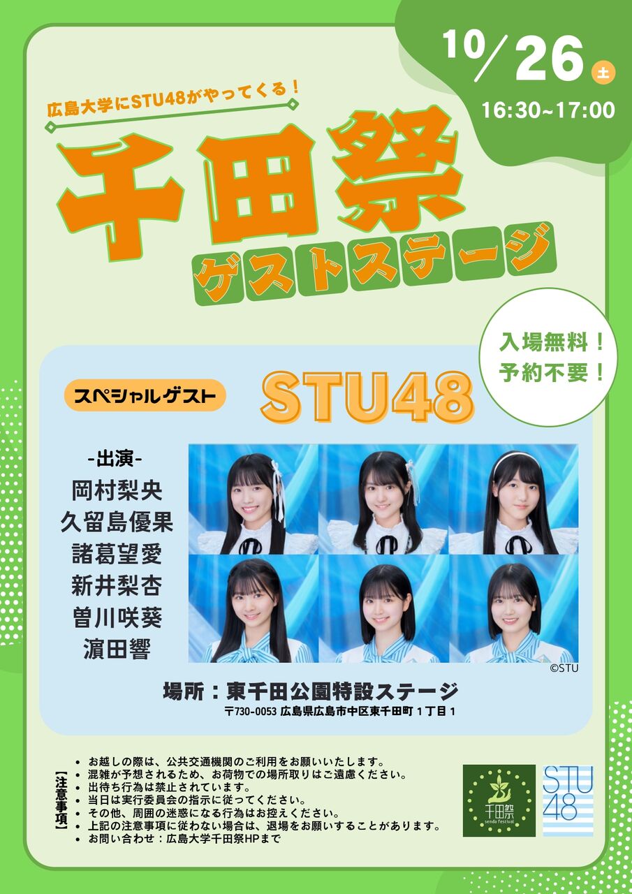 【STU48】10月26日(土)「広島大学 千田祭2024」に出演決定🏫【#新井梨杏 #岡村梨央 #久留島優果 #曽川咲葵 #濵田響 #諸葛望愛】