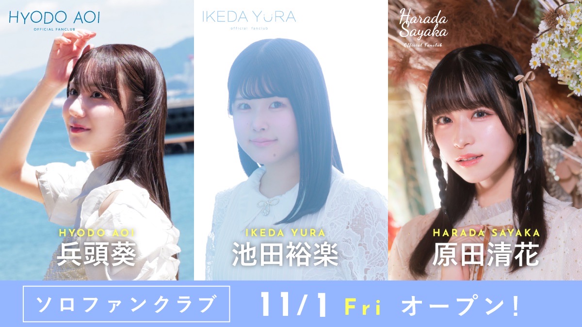 第五弾として池田裕楽・原田清花、兵頭葵のファンクラブが11月1日19:00よりオープン!