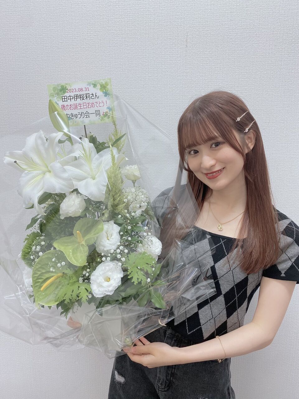 【田中伊桜莉】きゅうりちゃんとお誕生日お祝いお花