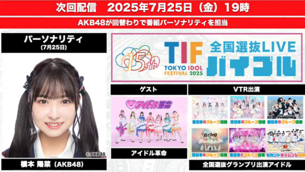 【動画】2025.07.25 TIF2025全国選抜LIVE・バイブル SHOWROOM 【MC AKB48 橋本陽菜】 スポンサーリンク AKB48 2025/07/26 04:29 【動画】2025.07.25 TIF2025全国選抜LIVE・バイブル SHOWROOM 【MC AKB48 橋本陽菜】 続きを読む