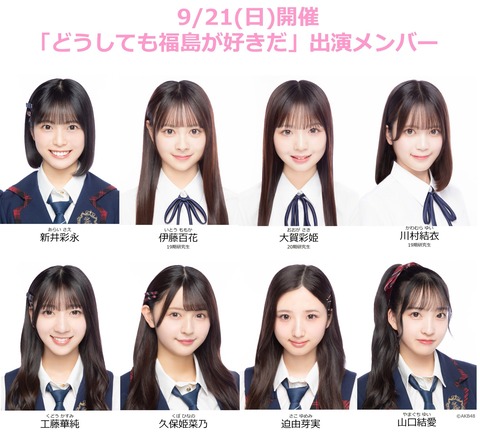 【AKB48】9月21日(日)『どうしても福島が好きだ』出演メンバー決定