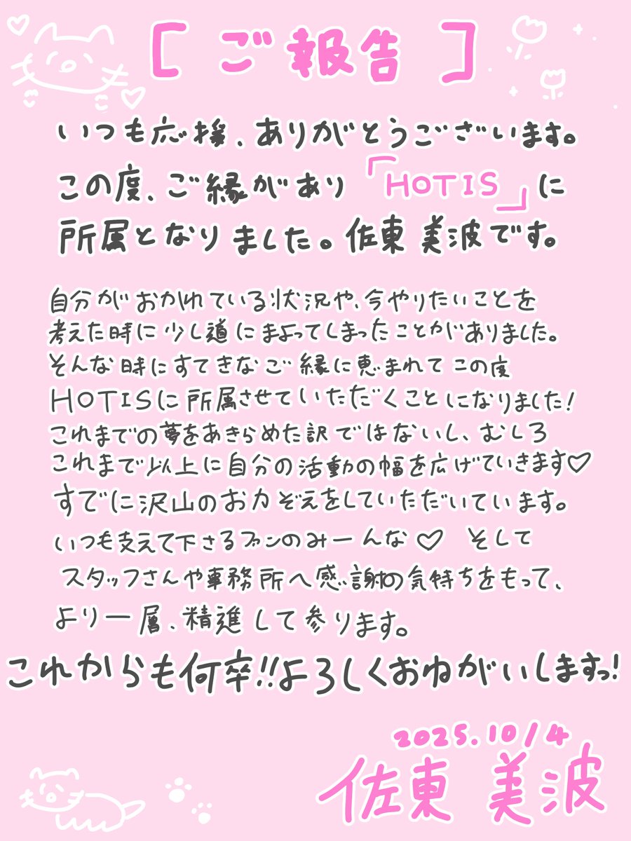 【元AKB48】佐東美波、株式会社HOTIS所属を発表