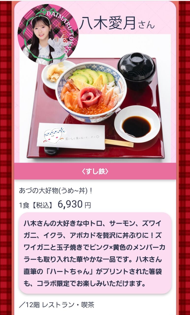 【AKB48】八木愛月さん、6,930円の丼物を考案してしまう【大丸収穫祭コラボメニュー】