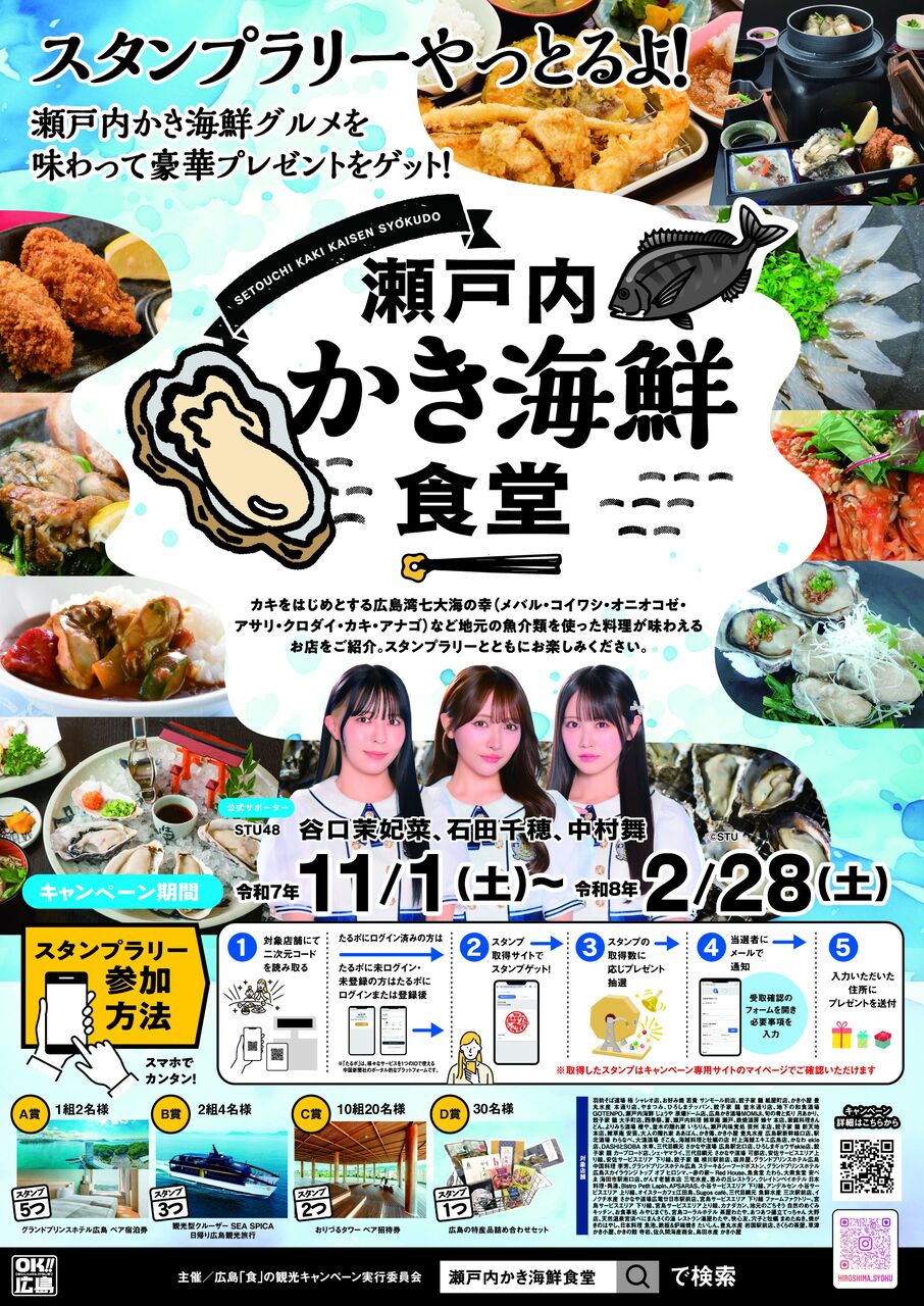 【STU48】石田千穂・谷口茉妃菜・中村舞、『瀬戸内かき海鮮食堂』公式サポーターに就任🦪