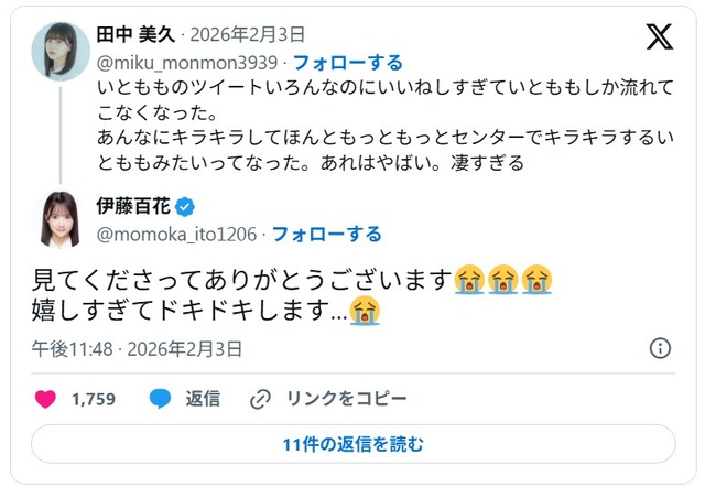 【元HKT48】田中美久「いともも!!!!!かわいすぎる!!!!!!!!!!やばい!!!!!!!」【AKB48伊藤百花】