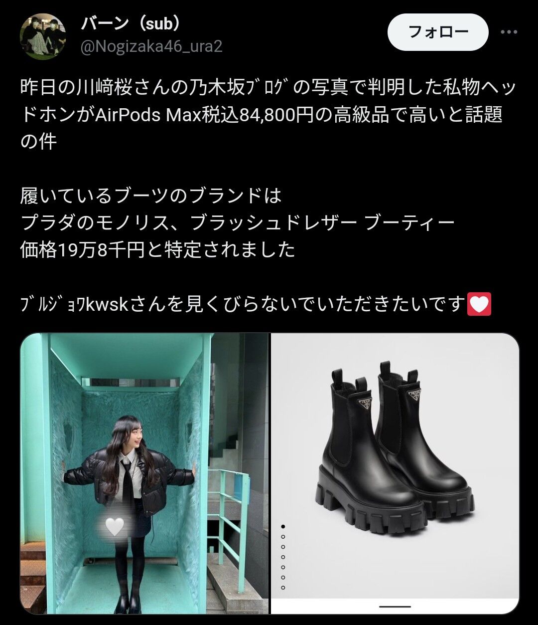 乃木坂の2年目新人、私服に35万円のジャケットと20万円のブーツと8.5万円のヘッドフォンを身に付けてしまい炎上 スポンサーリンク HKT48 2024/01/22 23:16 乃木坂の2年目新人、私服に35万円のジャケットと20万円のブーツと8.5万円のヘッドフォンを身に付けてしまい炎上 1: 名無し48さん (9段) 2024/01/21(日) 17:30:24.69 やっぱ給料多いんかねぇ VIPQ2_EXTDAT: none:none:1000:512:: EXT was configured 続きを読む
