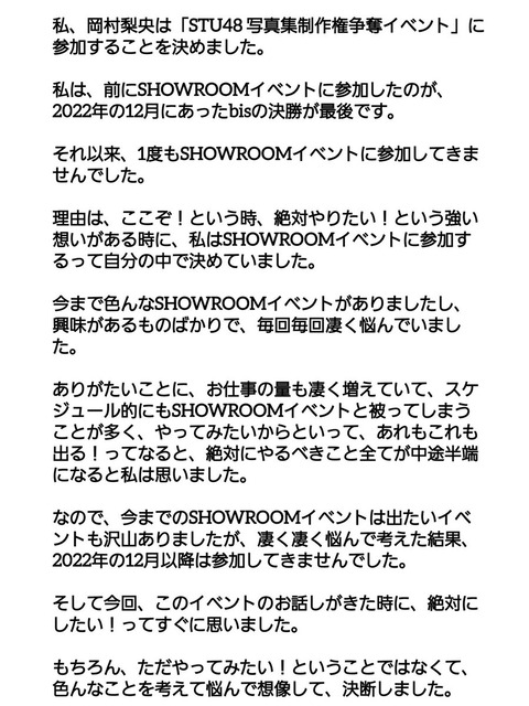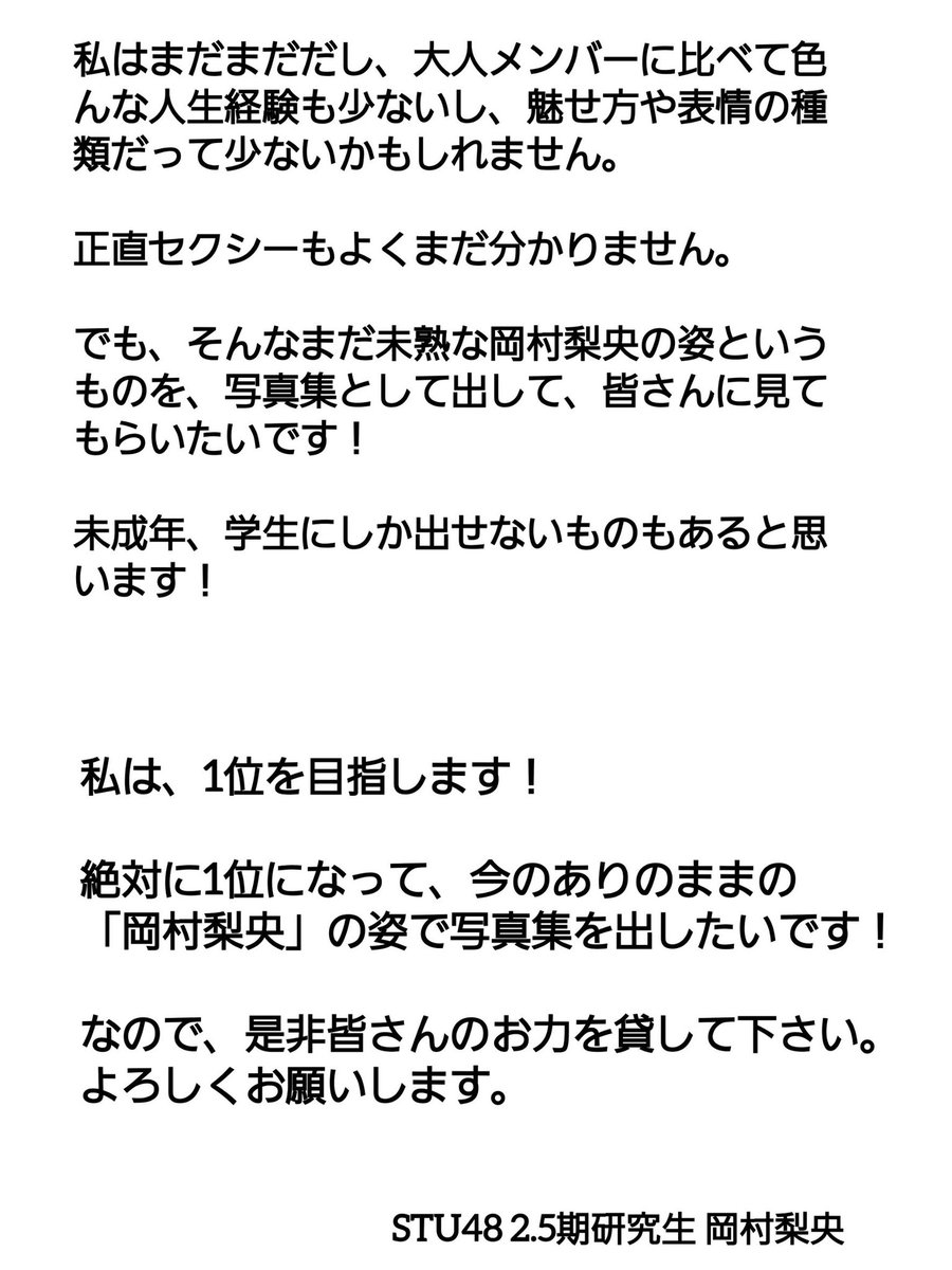 【STU48】中学生 #岡村梨央、『写真集制作権争奪イベント』立候補一番乗り🔥