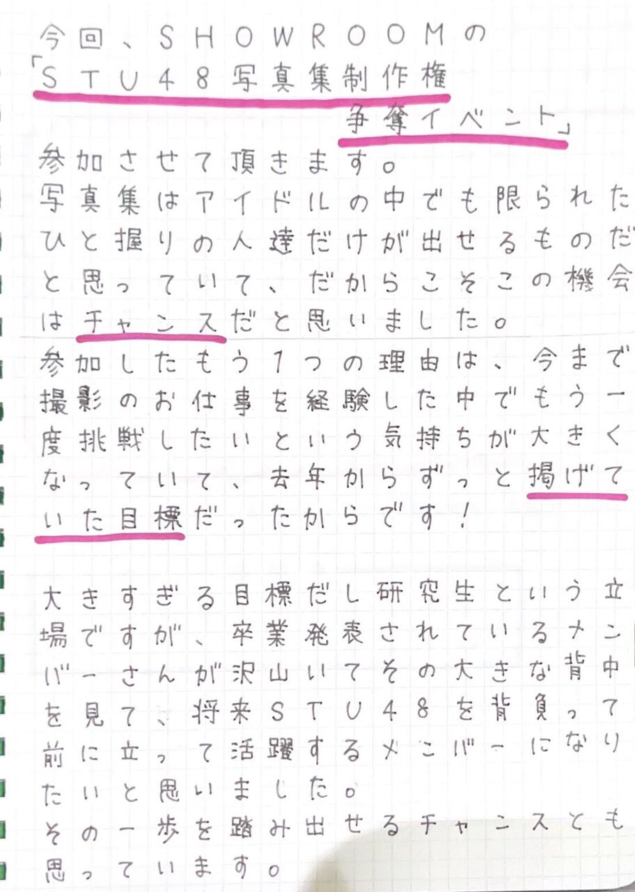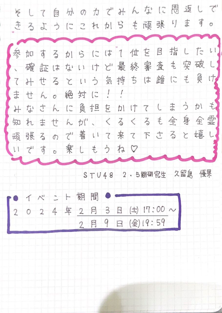 【STU48】久留島優果、『写真集制作権争奪イベント』参加表明
