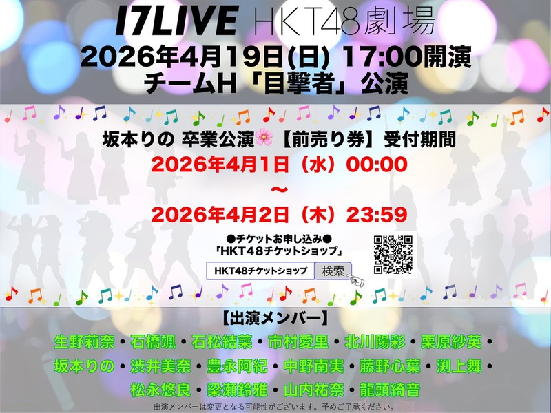 【お知らせ】4月19日(日)の出演メンバーのお知らせ スポンサーリンク 2026/04/01 20:39 【お知らせ】4月19日(日)の出演メンバーのお知らせ [紹介元] HKT48いもまと(HKT48のまとめサイト) 【お知らせ】4月19日(日)の出演メンバーのお知らせ