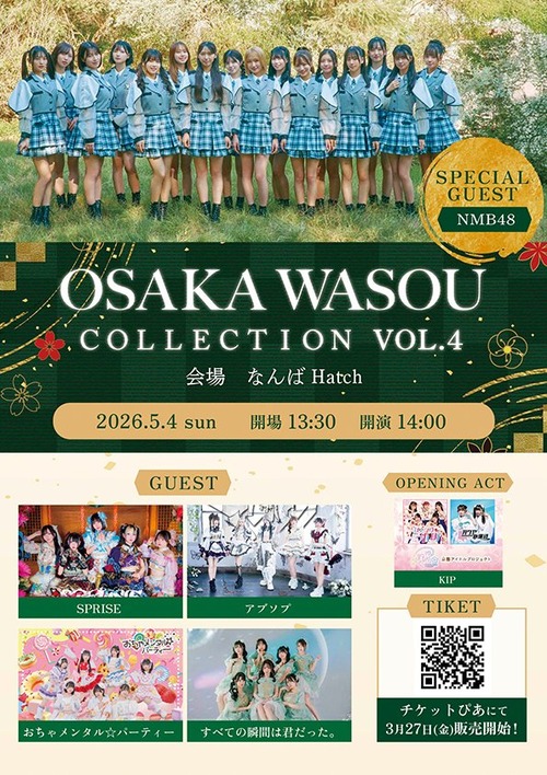 /OSAKA WASOU COLLECTION VOL.4\廃れさせてはいけない日本の文化『和装』をもっと身近に感じていただくことを目的とした和装ファッションショー👘✨チケット発売中🎟️▶️ https://t.co/ydYBfDmvSg🗓️5/4(月・祝) 14:00📍なんばHatch[出演]NMB48SPRISEアブソプ… pic.twitter.com/7lrAvfYjlV— ぴあ関西版WEB (@pia_kansai) April 2, 2026