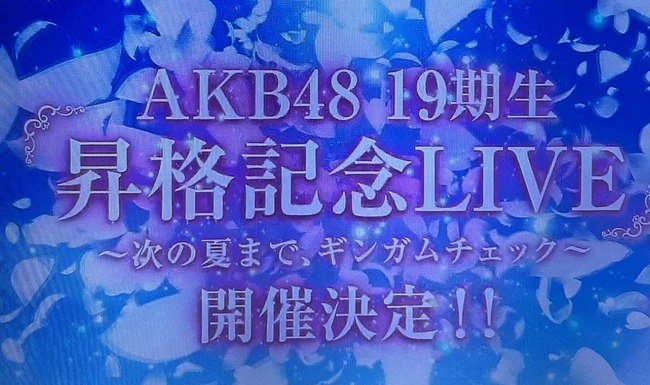 【朗報】AKB48 19期生昇格記念LIVE!開催決定!卒業予定の白鳥沙怜は7月12日夜のみ一部出演!! スポンサーリンク 2026/04/04 23:38 【朗報】AKB48 19期生昇格記念LIVE!開催決定!卒業予定の白鳥沙怜は7月12日夜のみ一部出演!! [紹介元] AKB48タイムズ(AKB48まとめ) 【朗報】AKB48 19期生昇格記念LIVE!開催決定!卒業予定の白鳥沙怜は7月12日夜のみ一部出演!!