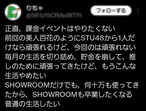 【悲報】STUメンバーが続々と課金イベント参加表明!またヲタ離れが加速へ