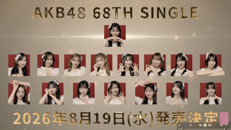 伊藤・佐藤・八木・小栗・倉野尾 山内・秋山・新井・川村・千葉 下尾・橋本恵・工藤・長友・水島・近藤(初) センター伊藤 °•. ⚜️🤍 𝐀𝐊𝐁𝟒𝟖 𝟔𝟖𝐭𝐡 𝐒𝐢𝐧𝐠𝐥𝐞 🤍⚜️.•°#AKB48_68thシングル8月19日(水)発売決定💿꙳✩センターは『名残り桜』に続き #伊藤百花 👑2作連続センターは渡辺麻友さん以来約12年ぶりとなります💎💫初選抜は最年少14歳の #近藤沙樹 .ᐟ.ᐟ▶︎▶︎ 選抜メンバー ◀︎◀︎… pic.twitter.com/Ig3lG5dxJP— AKB48公式 (@AKB48_staff) April 29, 2026
