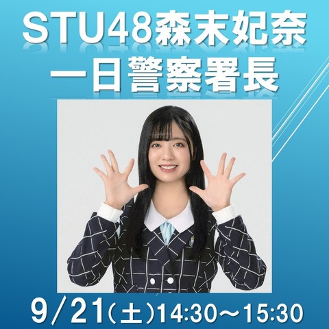 【STU48】森末妃奈、9/21(土) 倉敷警察署の一日警察署長に