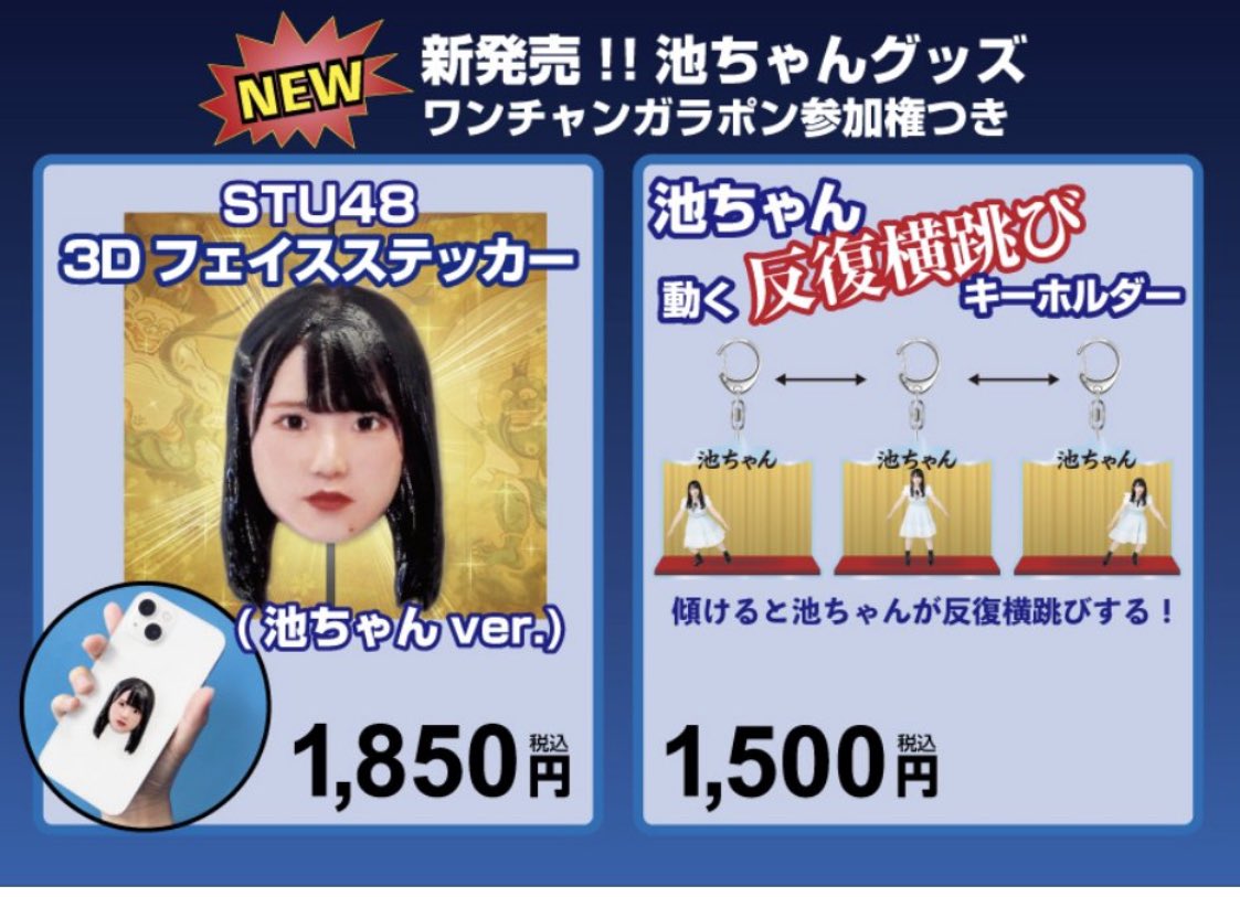 池田裕楽 (池ちゃん) (@stu48_ikegogo) on Xおはようございます☺️本日の花は誰のもの?東京公演会場にて池ちゃんグッズが販売されます🙌🏻3Dステッカーに加え反復横跳びキーホルダー!👭🏻✨反復グッズ欲しかった!念願です🥹🙏🏻✨みなさまぜひゲットしてください☺️💞#池ちゃん