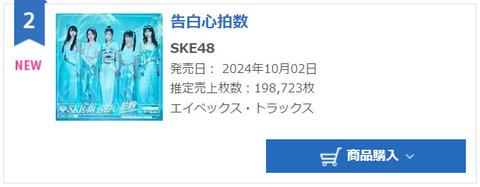 【SKE48】33rdシングル「告白心拍数」初日売上198,723枚 前作より6万枚減